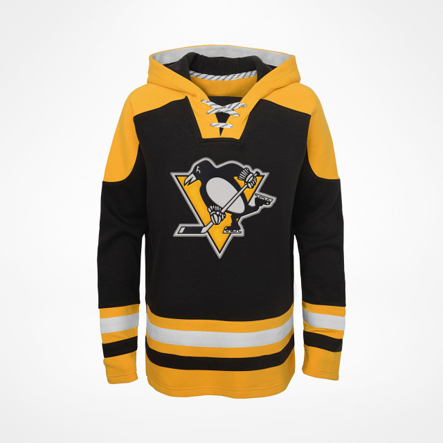 Barn/junior hettegenser med Pittsburgh Penguins merke over brystet.