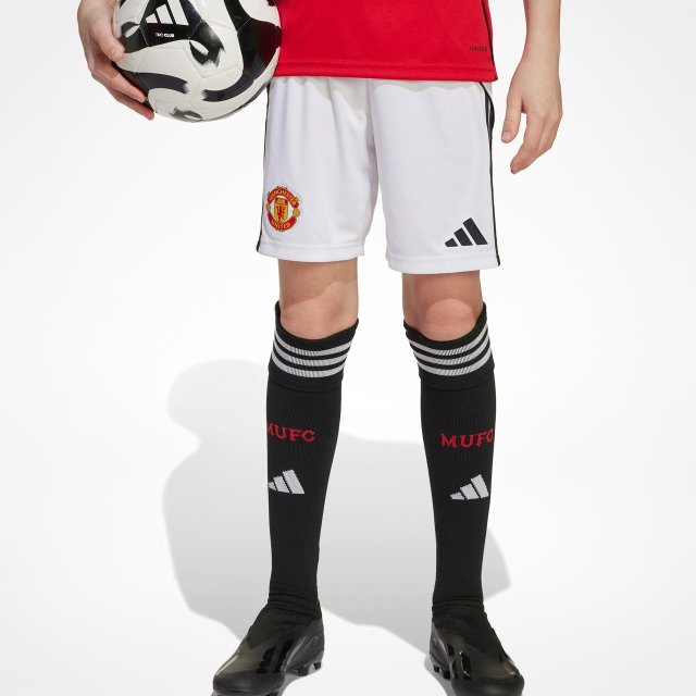 Manchester United hjemmeshorts junior for sesong 2025/26.