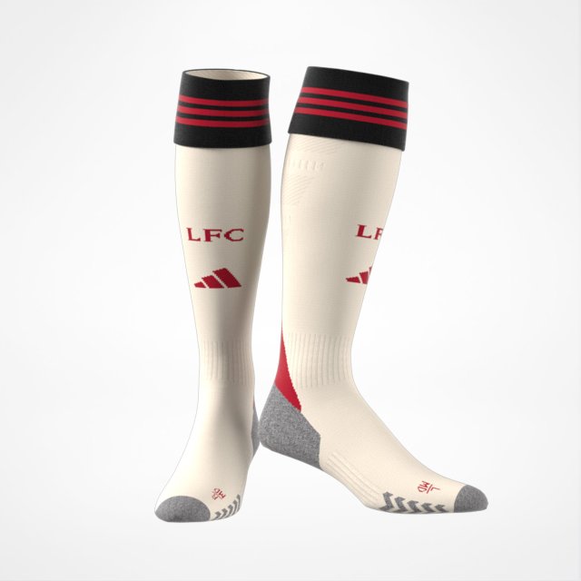Liverpool Bortestrømper 2025/26. Som en del av et adidas-bortekit inspirert av Anfields lange og rike historie, deler disse Liverpool FC-sokkene din fotballpassion takket være "LFC"-grafikken som er vevd inn i det elastiske stoffet. Fuktighetshåndterende AEROREADY gjør dem komfortable å bruke, enten du viser ferdighetene dine på banen eller blir med på feiringen på tribunen.