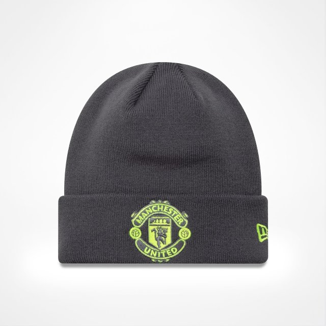 Denne klassiske luen i mørkegrått er en perfekt måte å vise din støtte til Manchester United. Den har en oppbrettet kant med en brodert Manchester United-logo i en iøynefallende neongrønn farge, noe som gir den en moderne vri.